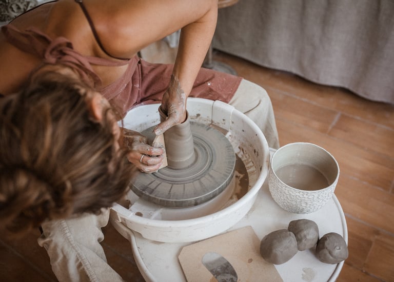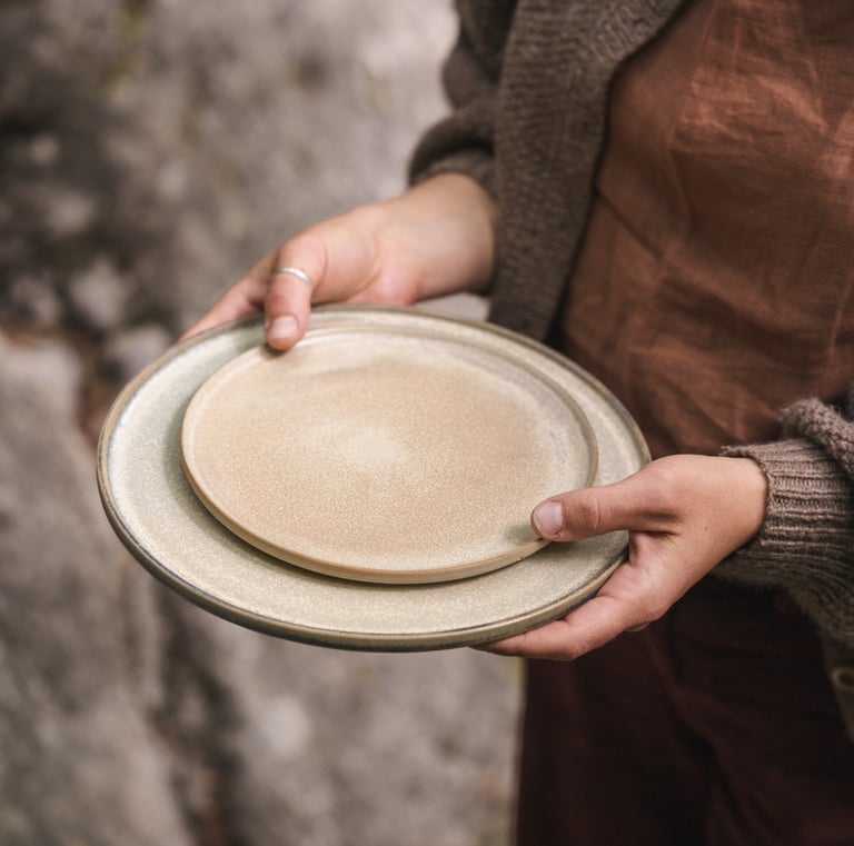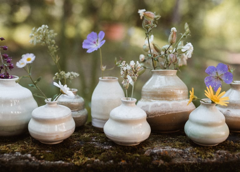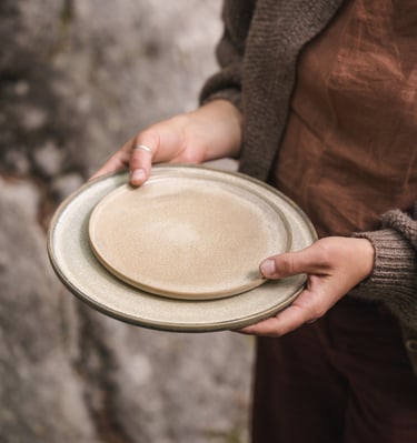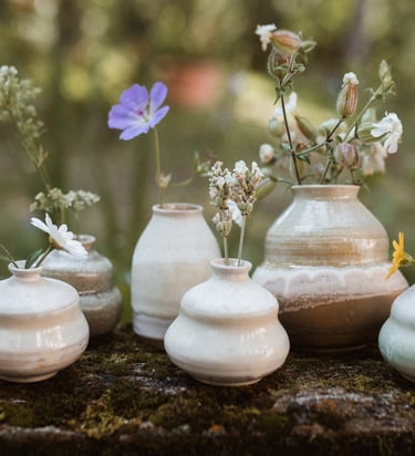 Mitten im Föhrenwald entstehen meine handgefertigten Keramiken. Der Blick aus meinem Fenster rein in den Föhrenwald fließt stark in meine Glasuren und Formen als Inspirationsquelle ein. Mein Atelier ist mein Produktionsplatz, aber auch Ort für Begegnung und Lernen. Ab März 2026 startet mein Kursprogramm im Verein Vielfalt in Pernitz und sobald es warm genug ist, geht's wieder los mit Kursen bei mir im Waldatelier.